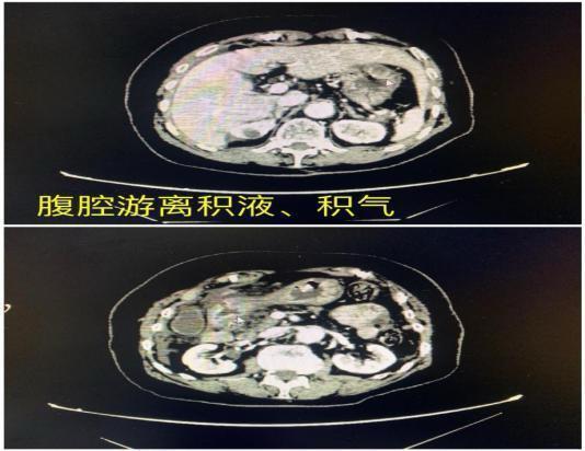 “患者入院时上腹部疼痛剧烈,呈刀割样、持续性,查体发现全腹肌紧张,全腹压痛、反跳痛,肠鸣音消失,胸腹部CT提示:腹腔游离积液、积气,考虑上消化道穿孔,穿孔点考虑位于胃窦部、十二指肠球部水平。”据急诊科副主任邵启兵介绍,病情紧急,医院马上开通绿色通道,在全麻下行腹腔镜胃窦穿孔修补+肠粘连松解术,术程顺利,术后转入急诊ICU严密监护治疗,经过精心治疗和护理,患者病情趋于平稳,于术后第2天停用呼吸机拔除气管插管,转入普通病房。
